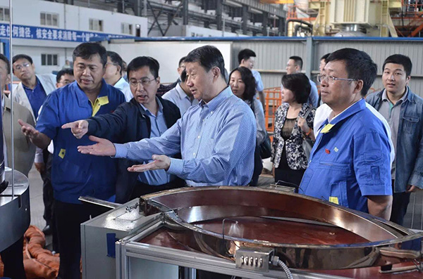 9月19日,國家電投董事長王炳華一行來到沈鼓集團(tuán),現(xiàn)場考察了主泵加工、試驗(yàn)等工作。集團(tuán)董事長戴繼雙、黨委書記孔躍龍、副總經(jīng)理于洪昌陪同考察。